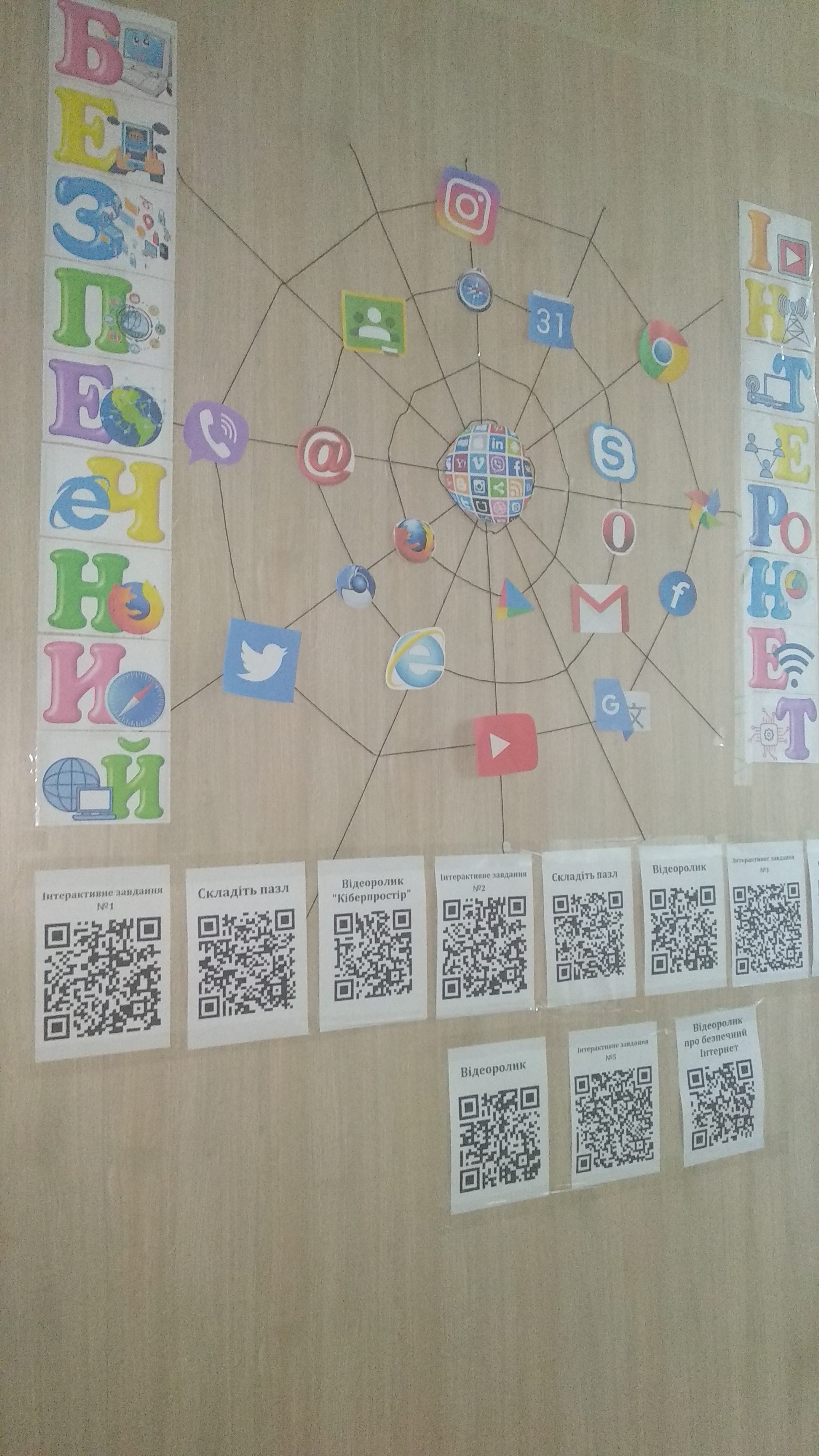 Вчителем інформатики Бурдун Б.П. та учнями 4А класу було створено інсталяцію “БЕЗПЕЧНИЙ ІНТЕРНЕТ” з інтерактивними завданнями: скласти тематичний пазл (JigsawPlanet), виконати завдання з сервісу learningapps та переглянути навчальні відео про безпечну поведінку в мережі Інтернету (YouTube).